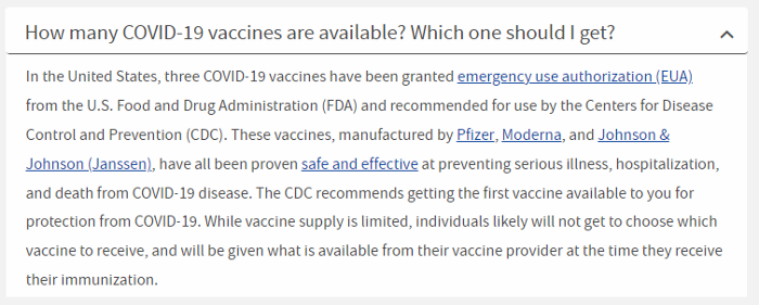 Gillian tells the student to go to https://gettheshot.coronavirus.ohio.gov/ to get information on where to get “a vaccine”. Essentially ignoring the student’s question. Let’s break this down to understand why the student was answered in this confusing way.