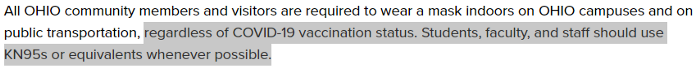 According to OU: “regardless of COVID-19 vaccination status. Students, faculty, and staff should use KN95s or equivalents whenever possible.”
