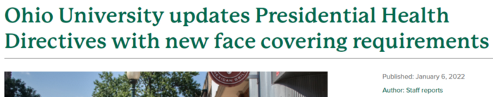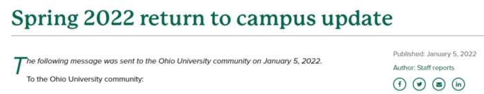 First on January 3rd Ohio University announced they will be requiring a test to return to campus or a second test to return to campus if you are a residential student.
