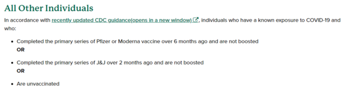 Everyone else including people with 2 doses over 6 months ago, people with J&J over 2 months ago, and unvaccinated people are now considered “all other individuals” OU has made it clear that if you do not give in and comply with big pharma you will be outcast and treated like a plague rat.