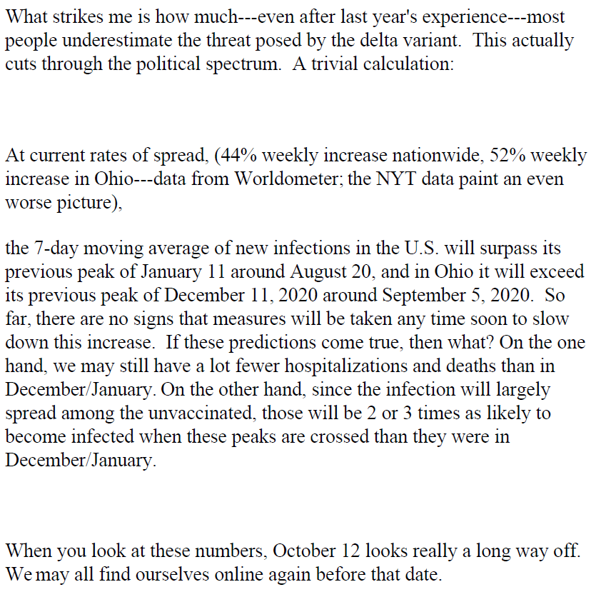 The person giving these recommendations to Gillian makes so seemingly outrageous claims about future spread of the Delta variant. Let’s look closer at these estimates and see how accurate they really ended up being.