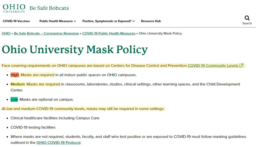 You can see on Ohio University’s website that unlike previous mask mandates, there is no official public announcement.