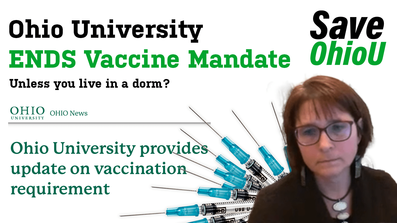 Beginning with Summer Semester 2022, Ohio University will no longer require COVID-19 vaccination for Ohio University employees and non-residential students. Students in dorms will continue to be illegally required to receive an experimental Emergency Authorized Vaccine (EUA) that Ohio University knowingly misleads people to believe is a different FDA approved vaccine to attend school. AlsoContinue reading “Ohio University Ends Vaccine Mandate?”