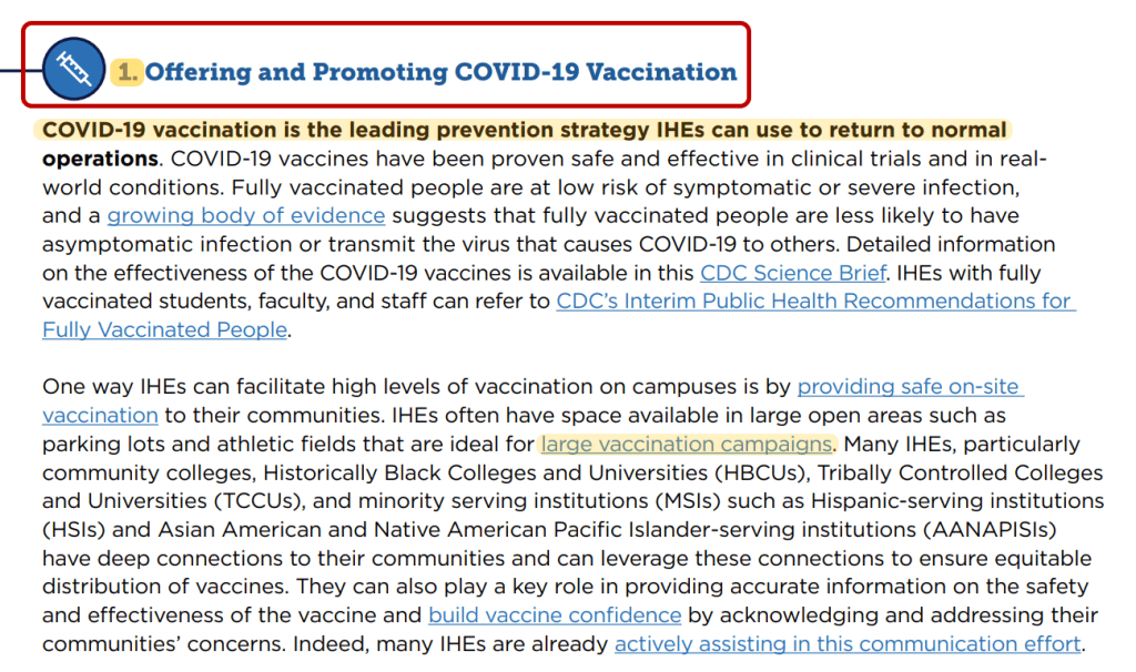 Despite the CDC’s guidance Ohio University only actually follows this guidance, federal law, and your right to refuse medical treatment as an Ohioan when the county level is low. As they admit below in their cited webpage.
