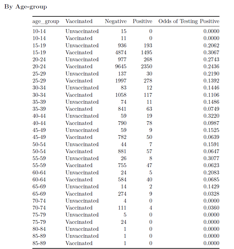 OU was nice enough to track the data by age too. As you can clearly see from Ohio University’s own data at EVERY SINGLE AGE more vaccinated people caught COVID. You will also notice like many have said for over 2 years, the odds of testing positive for anyone are extremely low.