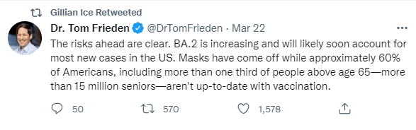 Mandates will be back in case you haven’t paid any attention the past 2 years. Gillian is already on a hysterical anti-science rampage on her social media still sharing known misinformationist tweets this time about the BA.2 variant.