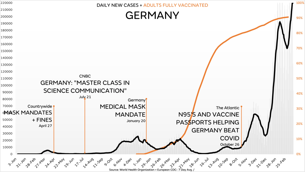 Cases in Germany are up 1,221% since The Atlantic reported they were beating COVID with N95 masks and vaccine passports.