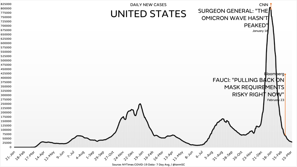 It is very likely especially during an election year we will see one of America’s political parties wait until the BA.2 surge begins, bring back mandates at the peak of the surge, and blame relaxed mandates for causing it and mandates for bringing the surge back down. They have tried to do this with nearly every surge and they have failed nearly every time to get the timing right because they really don’t know much about COVID or how it really spreads. This is how we are able to tell they are doing it.