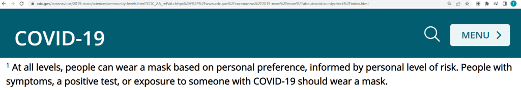 The CDC could not make it any clearer that “At all levels, people can wear a mask based on personal preference, informed by personal level of risk.“