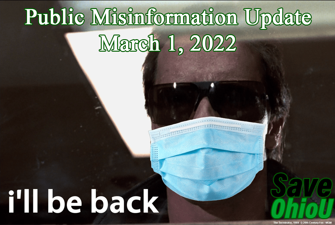 February 25th, The Centers For Disease Control updated their mask guidance. The Graphic below summarizes the new guidance. As of the time of this post Athens County, Ohio is in the low spread level, which the CDC recommends fully optional mask wearing, as we have, and recommended to the school countless times. The CDC levelContinue reading “Public Misinformation Update: March 1, 2022”