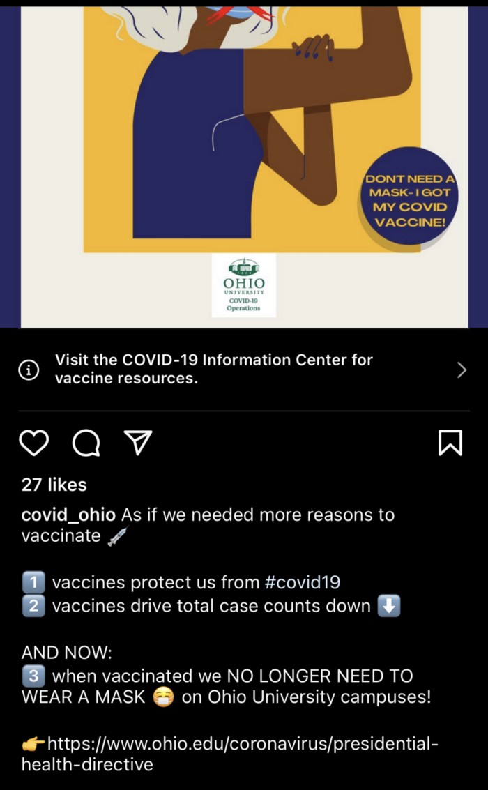 In the post below OU promised students that got vaccinated wouldn’t have to wear masks, when students arrived in August, they found this was a lie as Ohio University mandated masks for all. This also shows OU is conscious of the fact that masks are a bad dehumanizing thing. They offer a way out of the mask by simply injecting an experimental vaccine.
