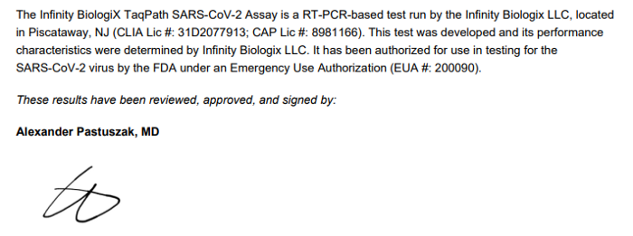 Ohio University faculty and staff also receive documentation of their testing results that also explicitly states it is only FDA emergency use authorized.